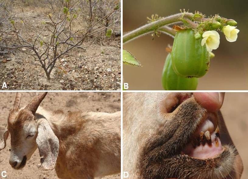 Segundo o veterinário, que também é supervisor do Bioma, as plantas tóxicas de maior ocorrência na região são: Pinhão Rasteiro (Jatropha ribifolia), Capoteira ou Batada-de-peba (Ipomoea verbascoidea), Algodão Bravo, Mata-bode ou Canudo (Ipomoea carnea), Maniçobas (Manihot spp.), Mandioca Brava (Manihot esculenta), Angico preto (Anadenanthe columbrina), Favela ou Faveleira (Cnidoscolus quercifolius) e Jurema preta (Minosa tenuiflora).