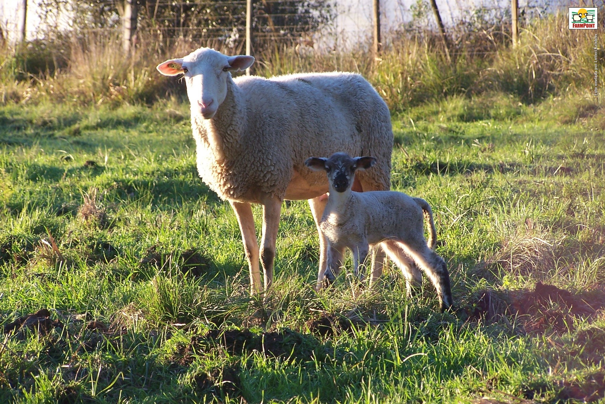 Foto: Letieri GrieblerOvelha cruza Lacaune e seu cordeiro. Esta ovelha faz parte do rebanho do Laboratório de Ovinocultura da UFSM. Esta fêmea é meio sangue Lacaune e foi cruzada com um reprodutor Suffolk. As suas crias nasceram com uma média de peso de 5,500 kg.