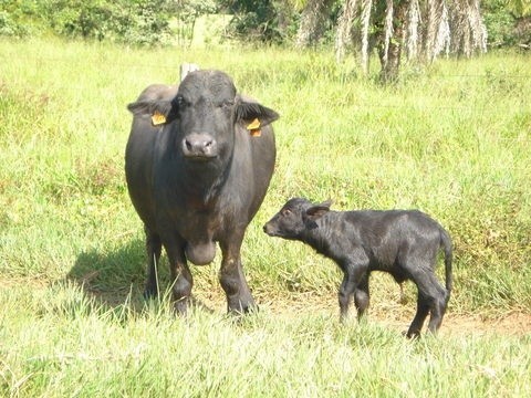 Búfala e seu bezerro recém nascido