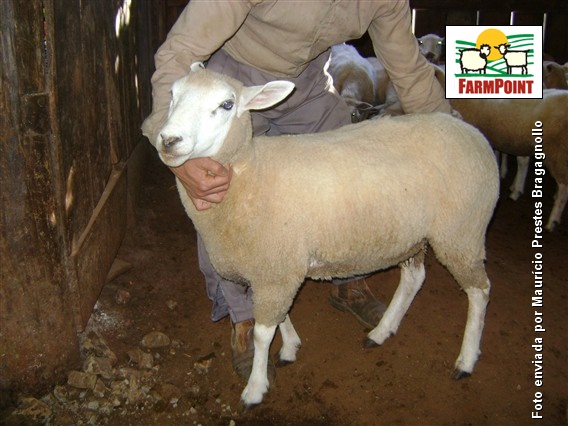 Foto: Maurício Prestes BragagnolloBorrega cruza Texel(2 dentes), sendo selecionada para o rebanho comercial da Fazenda. Fazenda Santa Anna/André da Rocha - RS