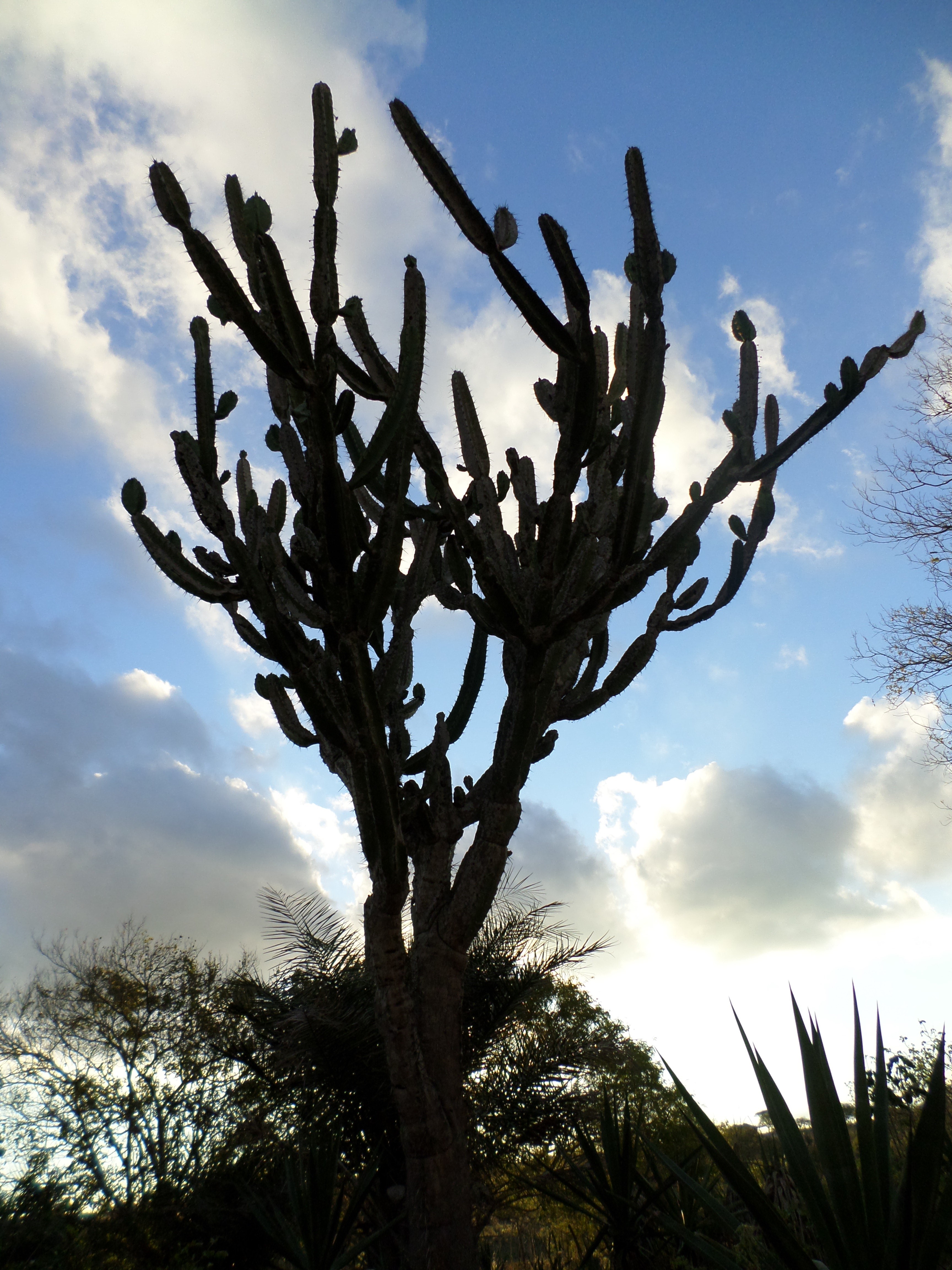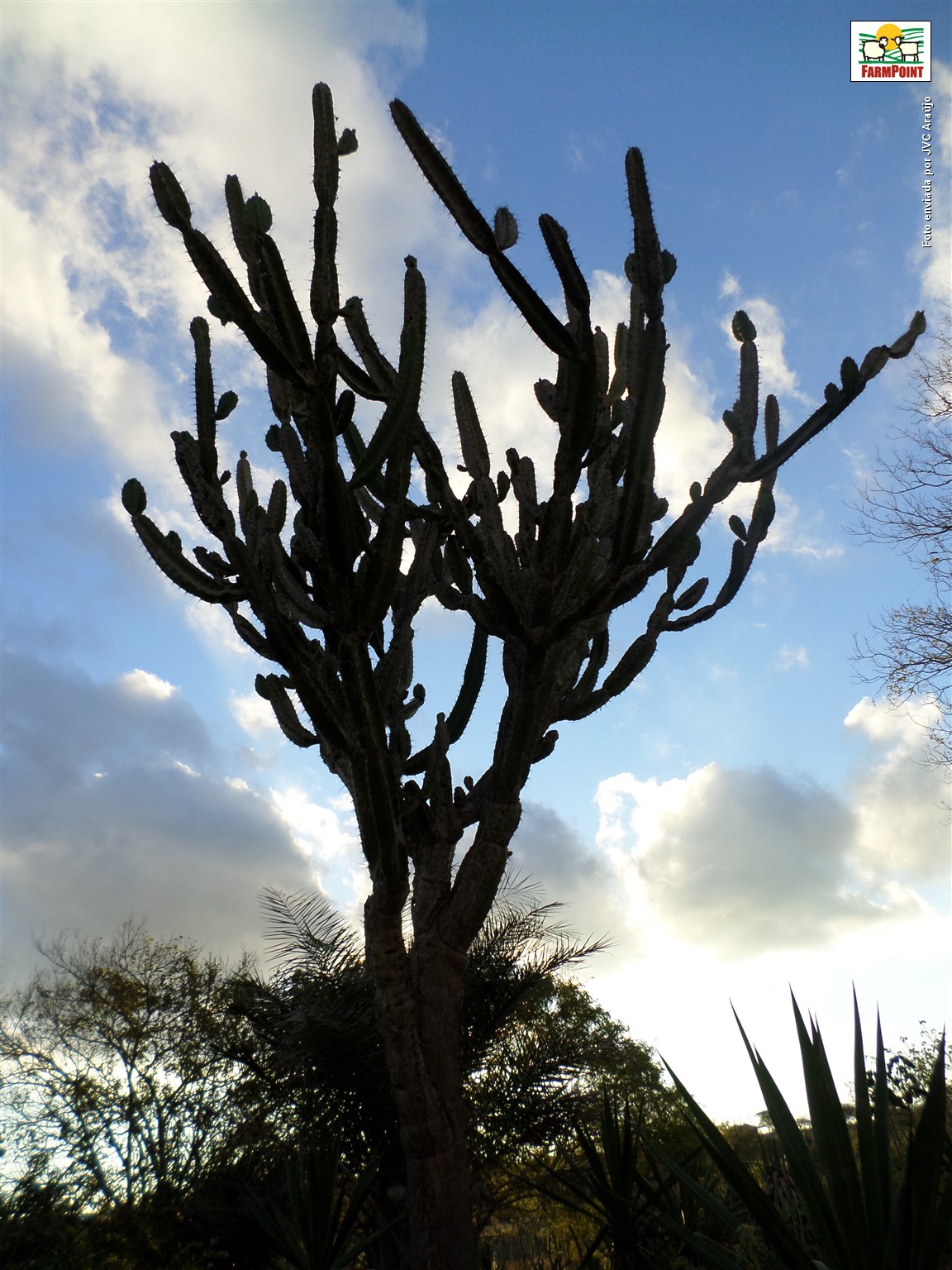 Foto: José Virmondes Carneiro Araújo Mandacaru. Conhecido por muitos brasileiros, principalmente pelos nordestinos. Um dos símbolos da resistência à falta de água, senão o mais característico. Muitas pessoas, por falta de conhecimento, acreditam que esse vegetal não tem 'serventia' alguma. Em função de sua morfologia externa, não é raro escutar pessoas dizendo que "o mandacaru não serve nem para dar sombra", porém, todo bom sertanejo sabe de sua importância, principalmente em épocas de secas prolongadas, onde esse é o único vegetal que reina nos pastos nordeste afora. Daí a importância de sua preservação, pois infelizmente a maioria dos criadores nordestinos (inclusive por falta de assistência técnica) ainda não se atentaram para a necessidade da produção e estocagem de ração animal (formação de pastos, plantação de palma forrageira, gliricídia e outras plantas com potencial para alimentação animal, quando em épocas de chuva) para o suprimento nas épocas de escassez de alimentos, sendo portanto o mandacaru a única opção, ou como se diz, a "salvação da lavoura" ou melhor dizendo a salvação do plantel.