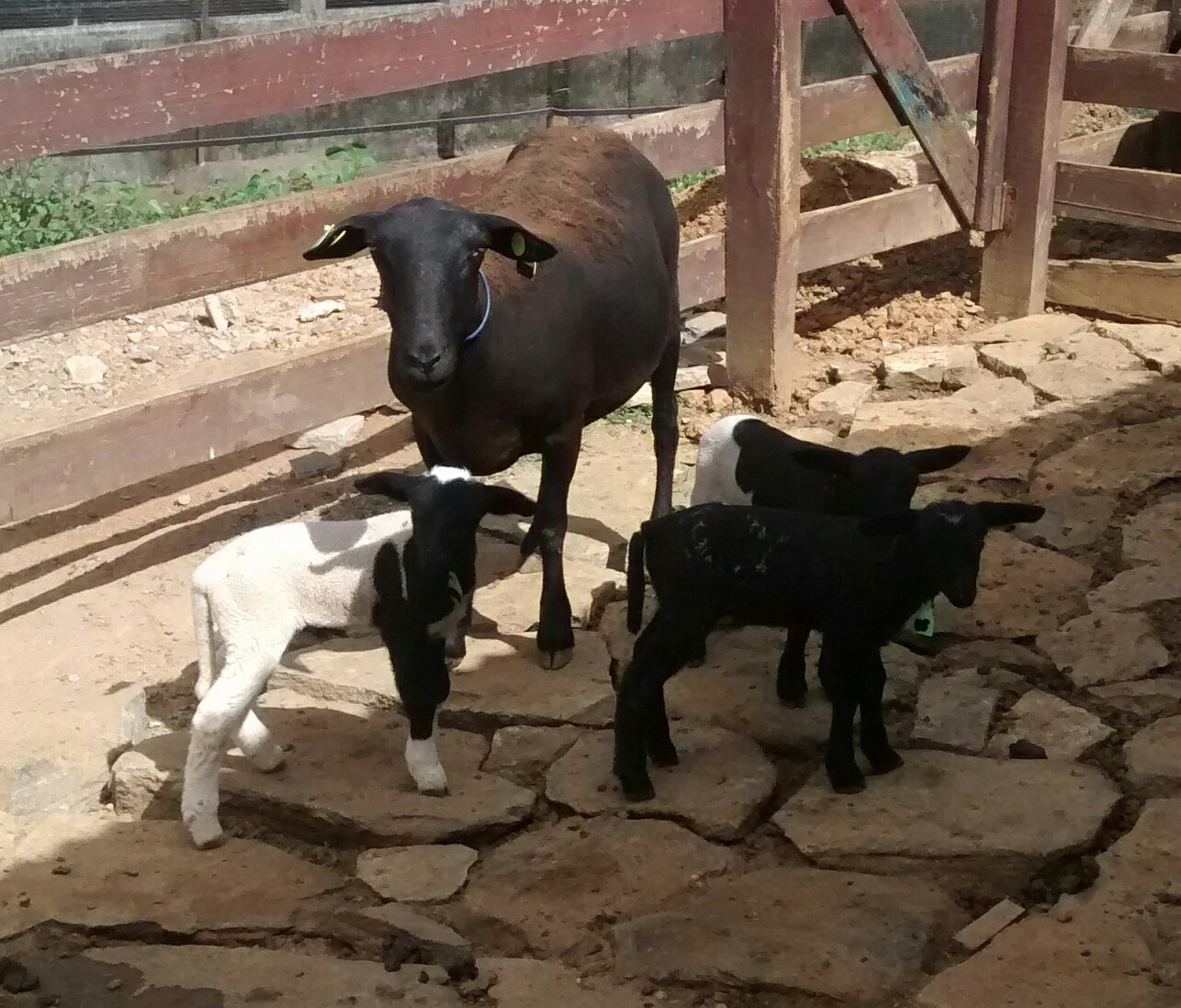Foto: Aluizio Junior - Dorper Jóia RaraProjeto Jóia Rara Dorper Booroola. Fêmea mestiça Dorper heterozigota para o gene Booroola, da Cabanha Jóia Rara, parida de trigêmeos. Por enquanto as fêmeas paridas portadoras de um alelo do gene Booroola estão com média de 2.14 cordeiros por parto.