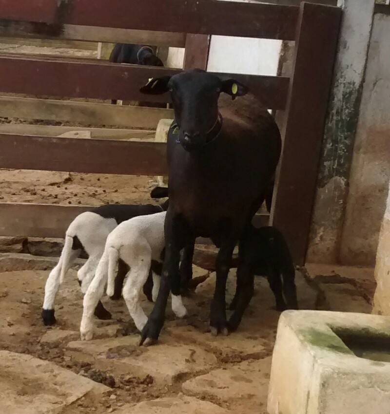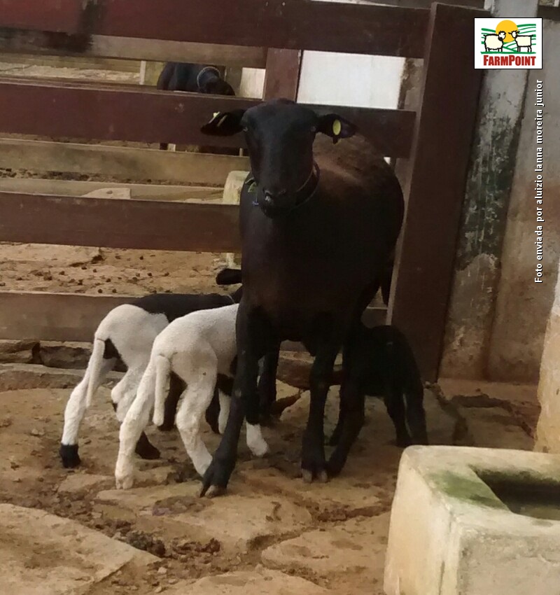 Foto: Aluizio Junior - Dorper Jóia RaraProjeto Jóia Rara Dorper Booroola. Fêmea mestiça Dorper da Cabanha Jóia Rara heterozigota para o gene Booroola, parida de trigêmeos. Até agora as fêmeas paridas na cabanha, portadoras do gene Booroola estão com média de 2.14 cordeiros por parto.