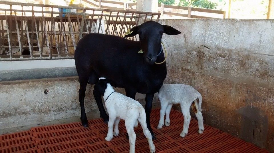 Foto: Dorper Jóia RaraJóia Rara Booroola. Dia muito especial para Cabanha Jóia Rara. Primeiro parto de muitos que virão, de matriz mestiça dorper portadora do gene booroola. Como esperado parto gemelar. Os cordeiros tem 50% de chance de possuírem o gene. Será feito o teste de DNA para dar prosseguimento ao projeto de inclusão do gene booroola na raça dorper.