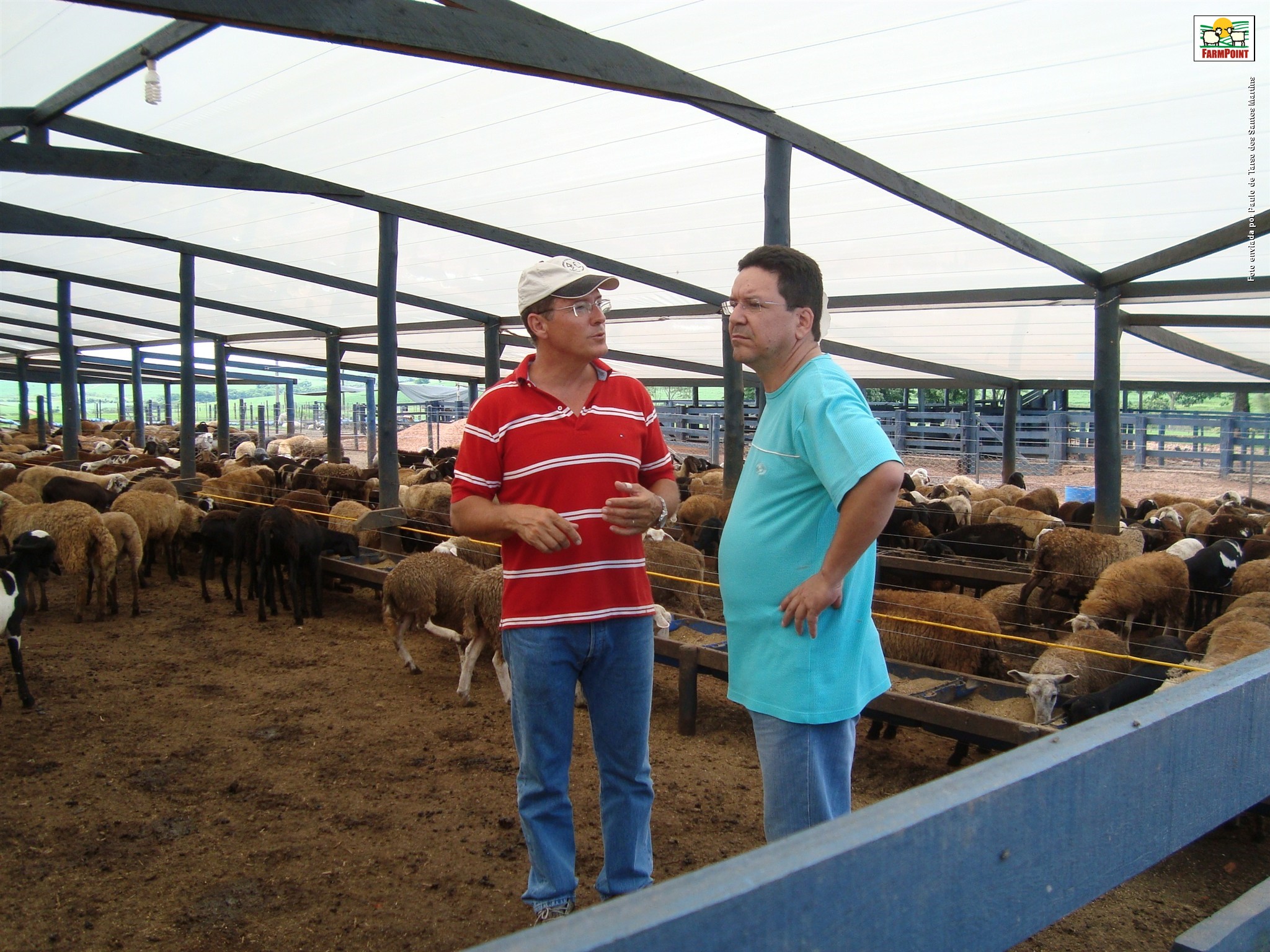 Foto: André Renck MartinsConfinamento de Cordeiros. Fazenda Santo Antônio-Araçatuba-SP, confinamento de ovinos. Fernando Gottardi e Paulo de Tarso observando as instalações e manejo dos animais provenientes do Mato Grosso para terminação na Cabanha Araçá.