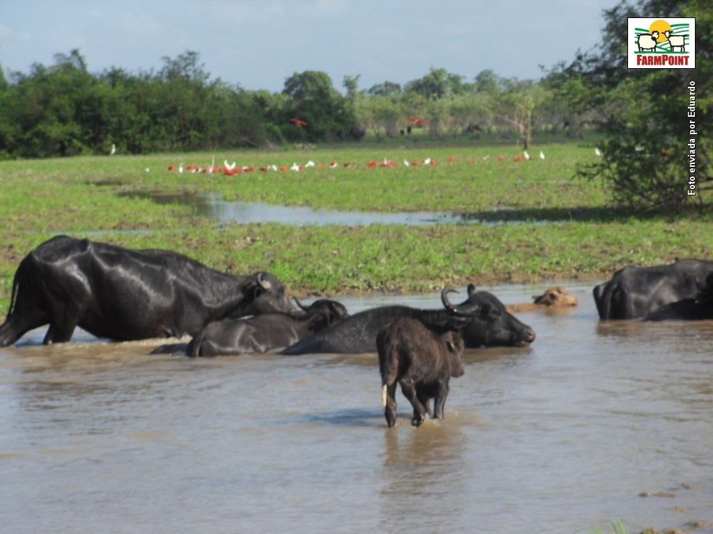 Foto: Eduardo Luiz HeinzenBúfalos. Bubalinos no Arquipélago do Bailique - Amapá, criados extensivamente em áreas alagadas.