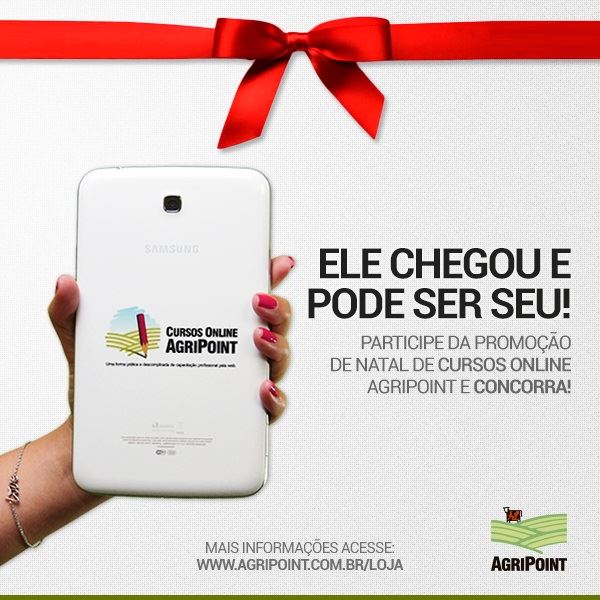 Aproveite as últimas semanas de 2013 para participar da promoção que vai sortear um Tablet Samsung Galaxy TAB 3 T2100, com todos os aplicativos da AgriPoint já instalados! Com os aplicativos é possível ter acesso às últimas notícias disponibilizadas nos portais AgriPoint, na palma da mão.